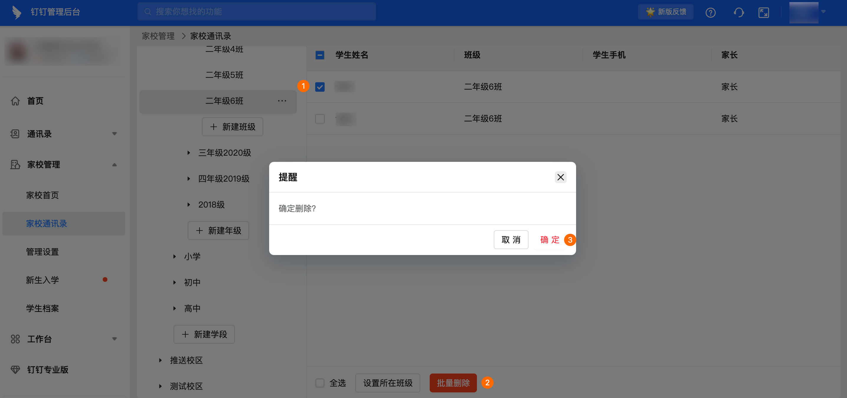 调用本接口,可删除学生。接口调用效果与下图操作实现效果一致。